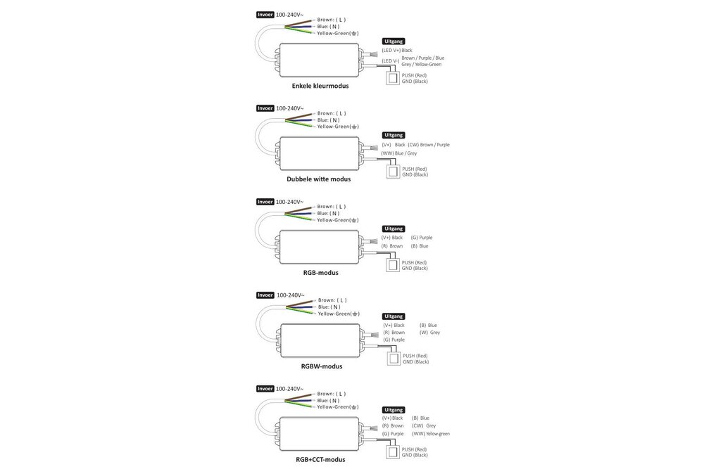 Push Dimmer Compatibiliteit: De aparte aansluiting voor push dimmers maakt het eenvoudig om een drukknopschakelaar aan te sluiten om de helderheid van je verlichting aan te passen met een simpele aanraking.