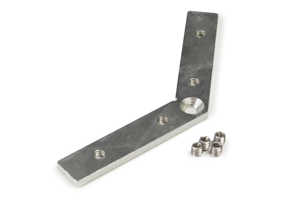 Met dit koppelstuk kunnen twee lengtes led profiel in een hoek van 135 graden aan elkaar gekoppeld worden. Inclusief 4 fixeer inbus boutjes.